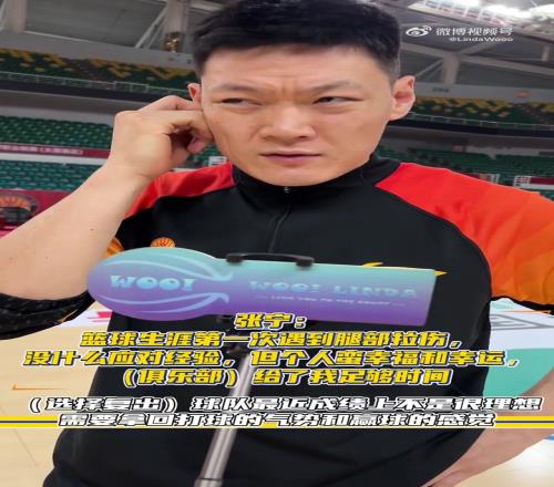 张宁谈复出:头一回拉伤没啥应对经验球队近况不佳想赶紧回来